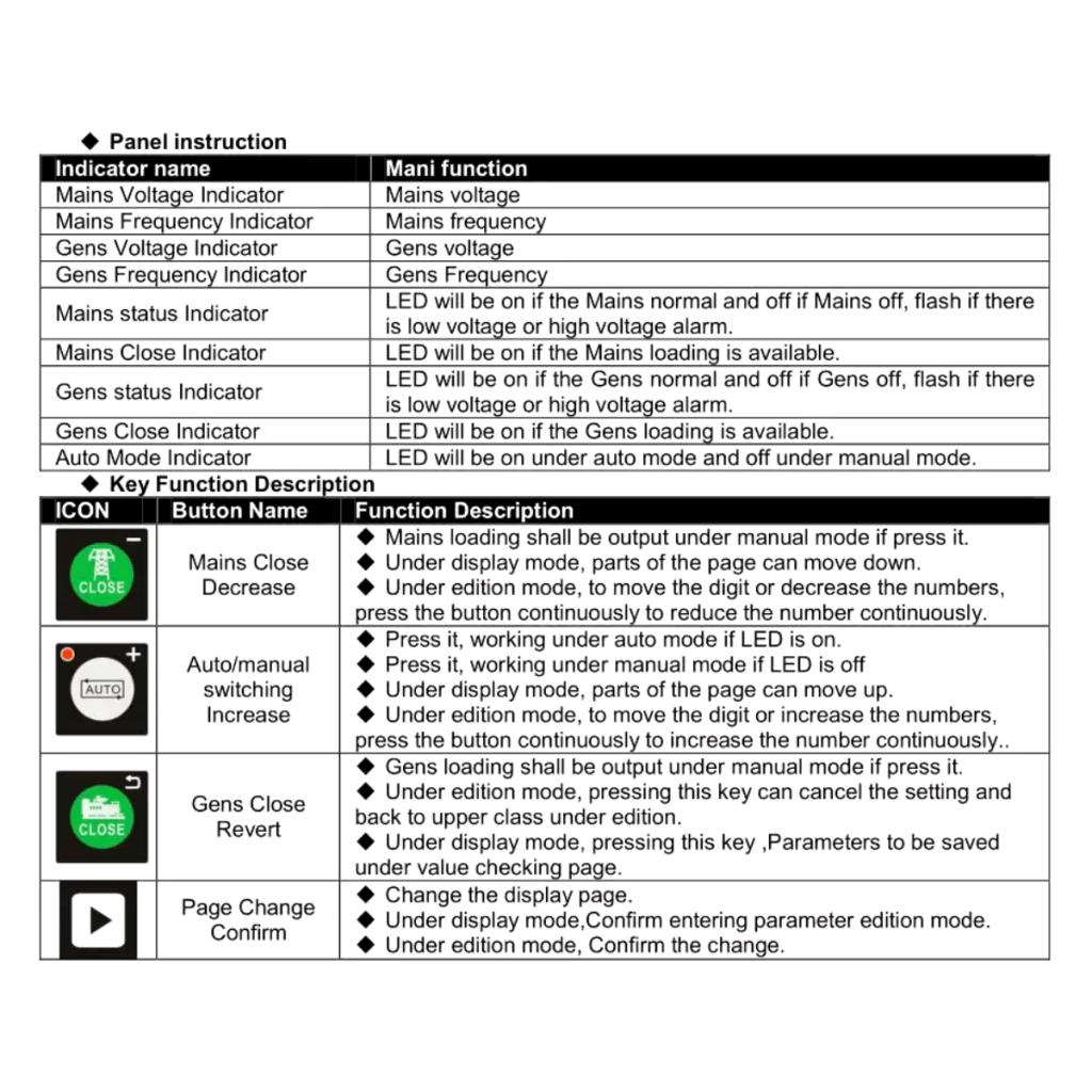O ATS220 é um controlador com sistema ATS, indicado especificamente para QUADROS DE TRANSFERÊNCIA AUTOMÁTICA (QTA), que pode controlar o interruptor ATS por modo automático ou manual para solicitar energia elétrica do gerador ou da rede elétrica concessionária. É com 4 dígitos tubo LED que pode exibir a tensão Gem, freqüência Gen, tensão de rede, Frequência da rede. O status do ATS também pode ser mostrado pelo LED. Todos os parâmetros podem ser definidos através dos botões frontais ou da porta do PC.