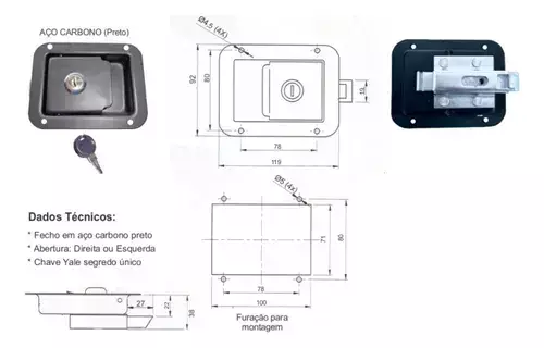 Fechadura anti-roubo durável de aço carbono PRETO para gabinetes de chassis de geradores, conteineres, caçamba e outros, garantindo segurança robusta e longevidade. Certificado pela CCC, garantindo conformidade com os padrões de segurança e aumentando a confiança do comprador.